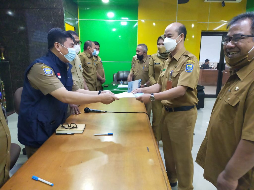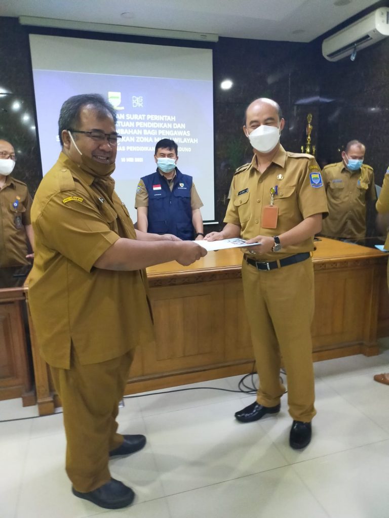 Proses serah terima jabatan disaksikan oleh Bapak Hikmat Ginanjar, M.Si., selaku Kepala Dinas dan Bapak Drs. H. Cucu Saputra, M.M.Pd. selaku Sekretaris Dinas Pendidikan Kota Bandung,